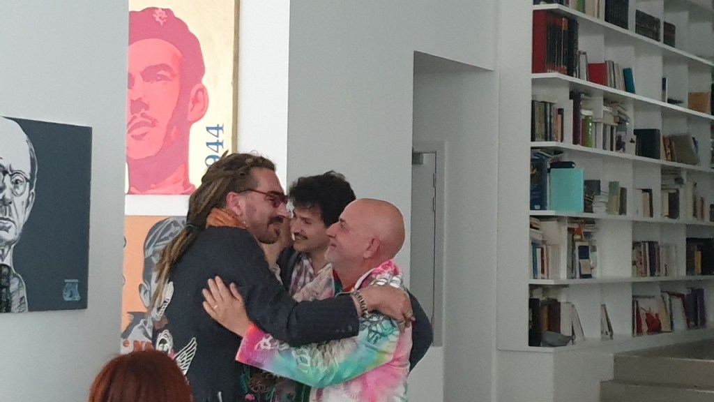 A leur arrivée au Luxembourg, personne ne savait à quoi s’attendre. Pedro et Bassanti forment le duo des Borderlovers. Ils ont été invités par l’Ambassade du Portugal, le Centre Culturel Portugais – Camões et la Ville de Luxembourg pour couvrir les murs de la Cité de leurs immenses patchworks de portraits d’artistes portugais et luxembourgeois. Ils arrivent sans idée préconçue et prennent le pouls du lieu, puis se mettent au travail d’arrache-pied, nuit et jour, et malgré les difficultés qui surgissent, ils mènent à bien leur œuvre.