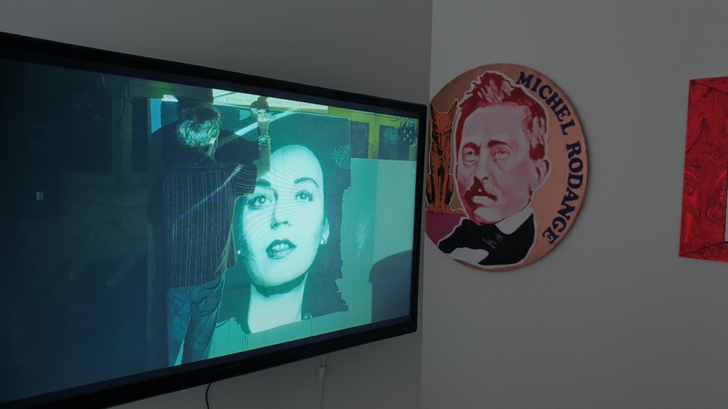 Composition de plans filmés et photographiés pendant la création du portrait à l’atelier Canopée et lors de la performance du vernissage de l’accrochage de la toile vis à vis de la Bibliothèque nationale. En hommage du centenaire de la naissance de la poétesse.