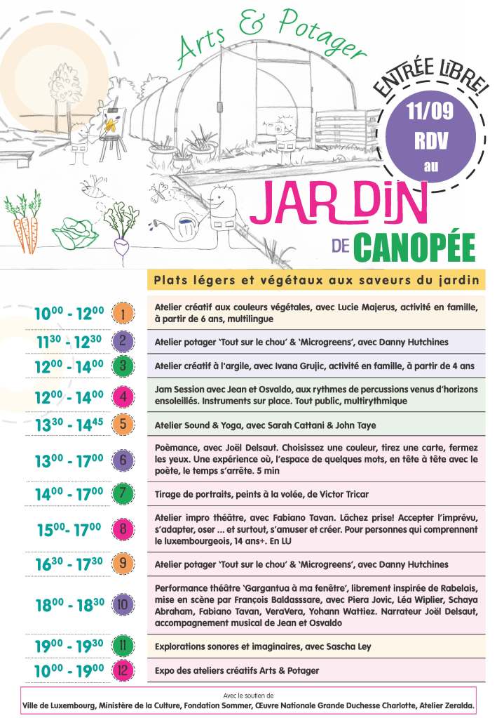 Au menu figureront ateliers créatifs pour petits et grands, yoga, musique, performance théâtrale, découverte du jardin et dégustations diverses et variées.