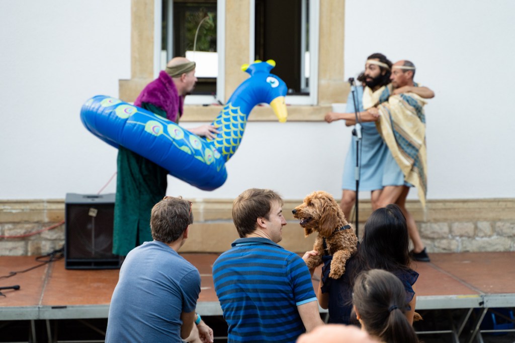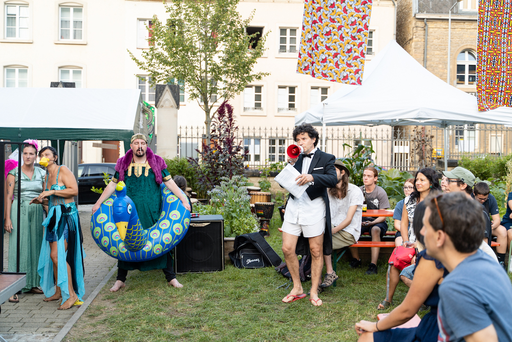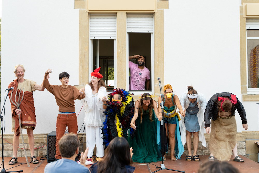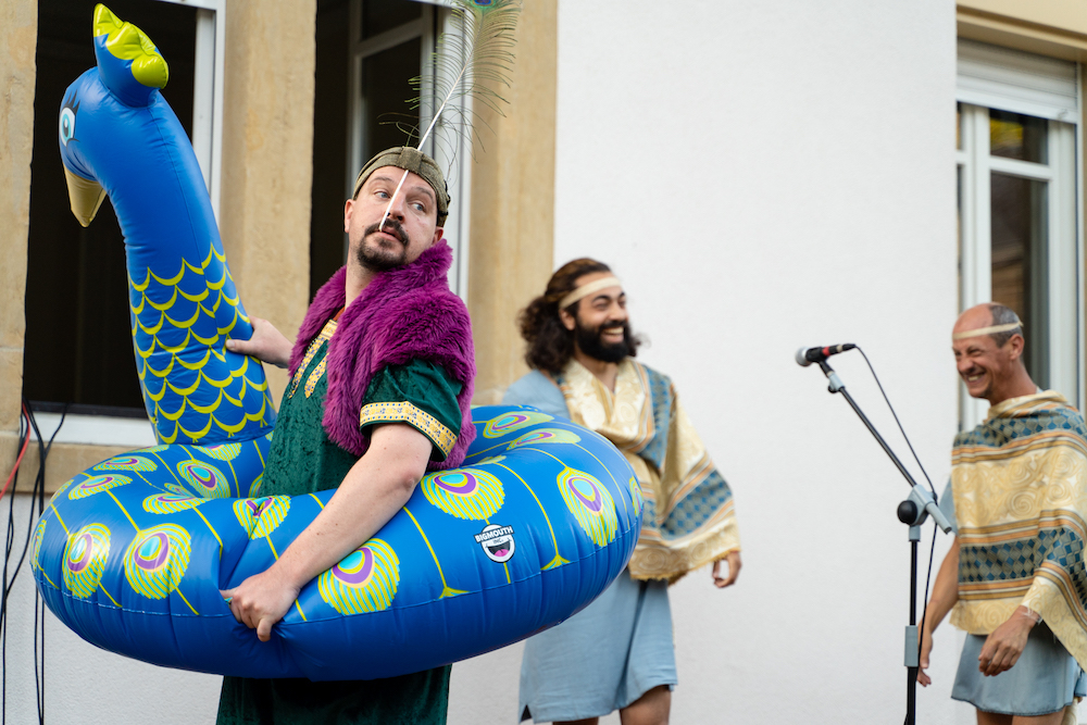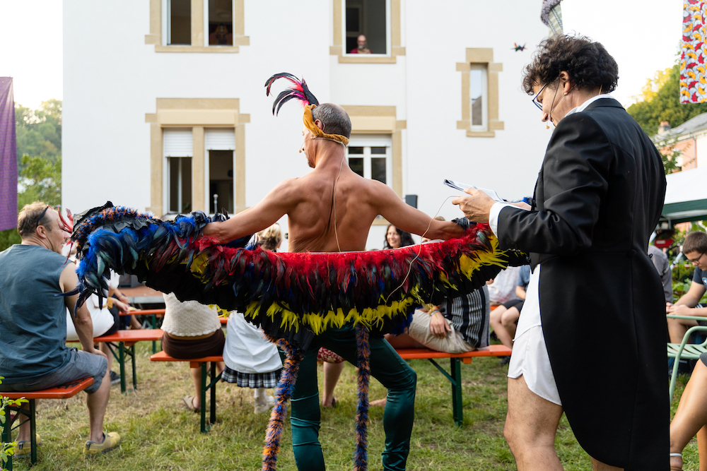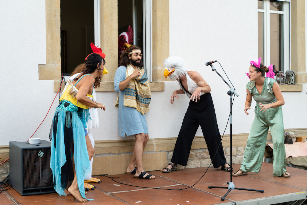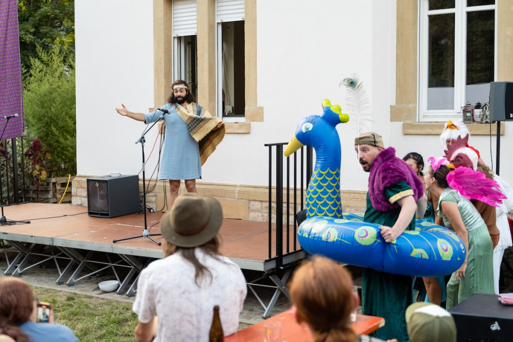 Dans le cadre du Rendez-vous au Jardin de Canopée, dimanche 10 septembre 2023, à 18:00, nous avons pu découvrir la performance théâtrale Les Piafs ! une critique comique de la société, des lois, et du vivre ensemble, très librement inspirée d’après la comédie utopique ‘Les oiseaux’ d’Aristophane, écrite et mise en scène par François Baldassare !