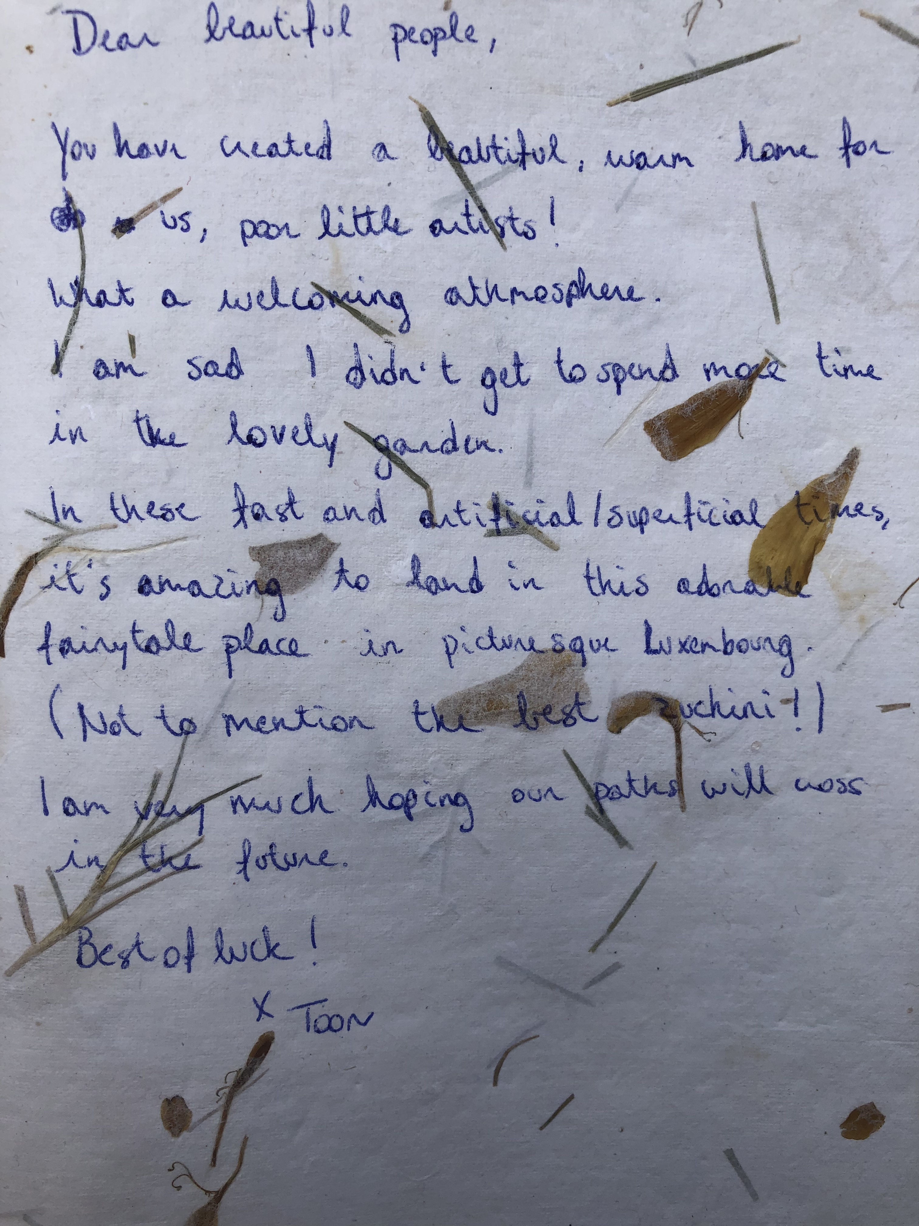 Nous saluons et remercions chaleureusement tous les artistes qui ont croisé notre chemin, nos co-résidents et nos voisins, nos partenaires de projets, la Ville de Luxembourg et le Ministère de la Culture, la Fondation Sommer, l’Oeuvre nationale Grande Duchesse Charlotte, l’Atelier Zeralda, le Forum pour l’Emploi et tous les autres soutiens qui ont contribué au succès de nos projets !