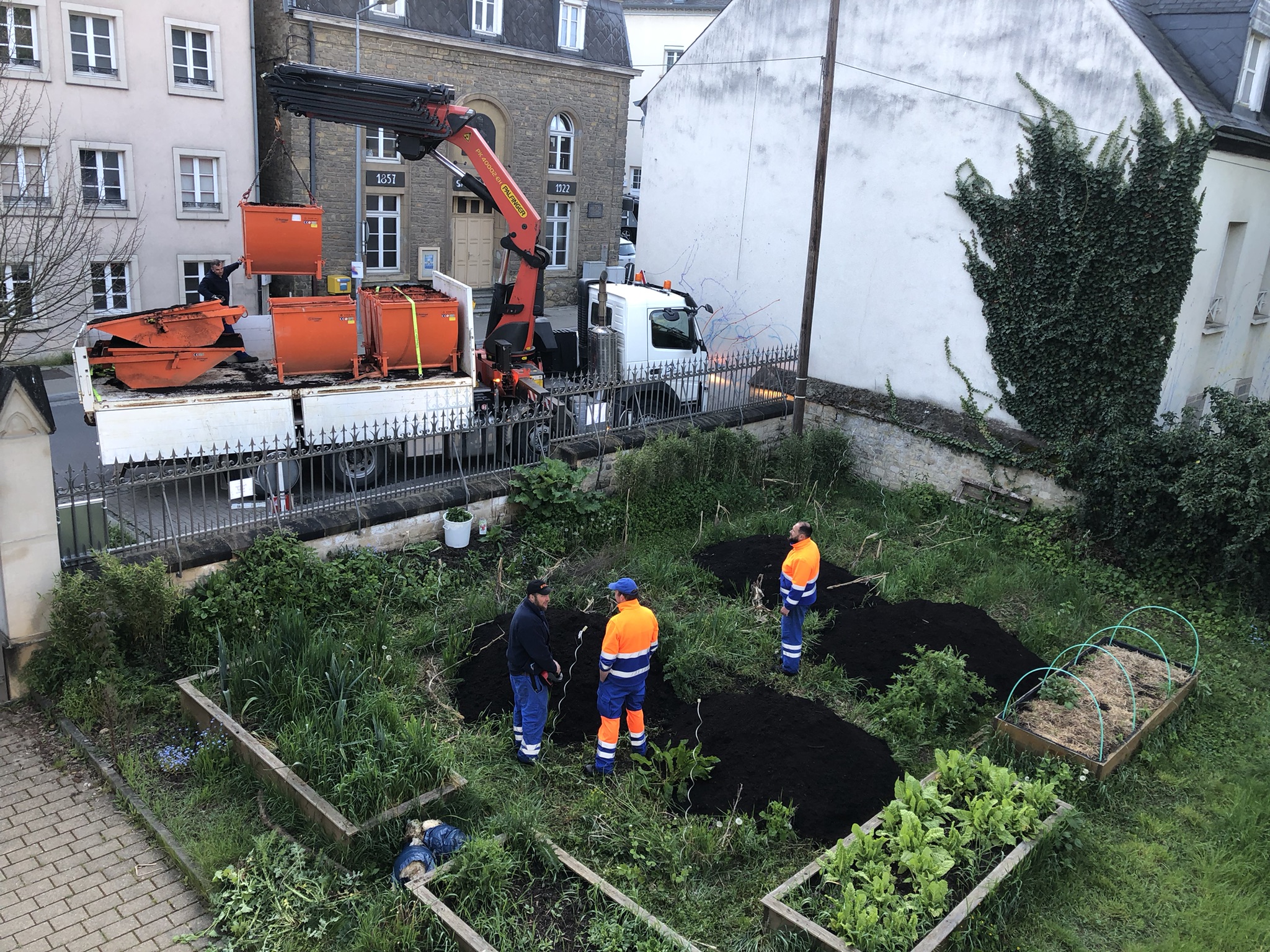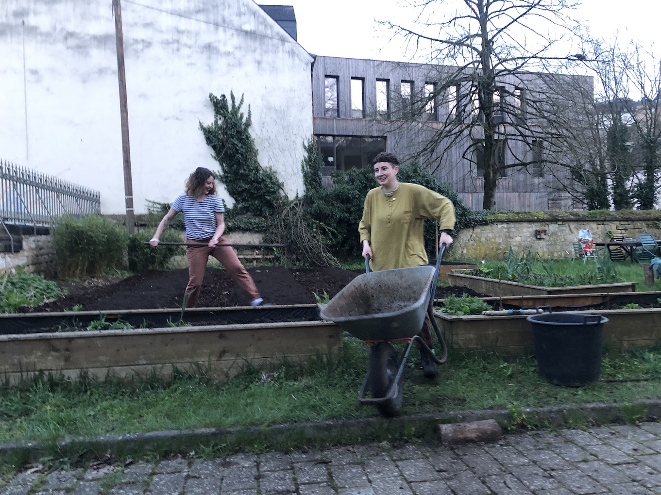 Ce début de saison a été marqué par une collaboration fructueuse avec l’équipe de ProActif dans le but de “réveiller le jardin”. Grâce à leur précieuse aide, nous sommes désormais prêt à accueillir une nouvelle saison prometteuse et florissante. Elise et Krystal, nos vaillantes co-résidente à l’année, nous ont rejoint en fin de journée pour finir à étaler les dernières brouettes des 5m3 de compost livrés par le service des Parcs de la Ville de Luxembourg.