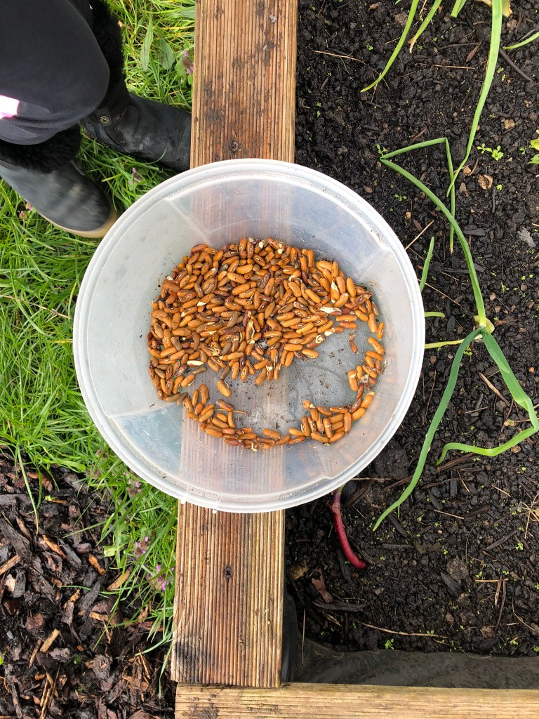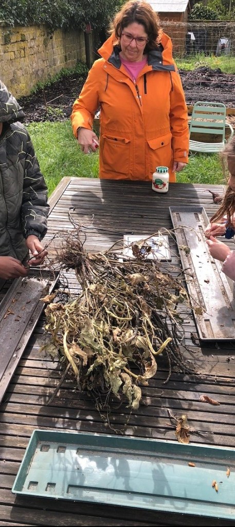 Comme chaque année, les enfants de la maison relais Atelier Zeralda ont retrouvé le chemin du jardin pour un après-midi mémorable. Malgré les températures encore assez fraîches, nous avons semé des haricots nain, des graines robustes qui prospèrent même par un temps frais, résistant jusqu’à -3°C. Pour ce faire, les petits jardiniers en herbe ont d’abord décortiqué les graines de la plante entière déséchée que nous avions récupérée de l’année précédente, soulignant ainsi l’importance de ne pas se fier aux apparences. À la fin de cet atelier, Viola, l’éducatrice de l’Atelier, a préparé des tartines agrémentées de beurre fait maison ramené par les enfants, ainsi que d’herbes et fleurs fraîches du jardin, une manière délicieuse de clôturer ce chouette après-midi en plein air.