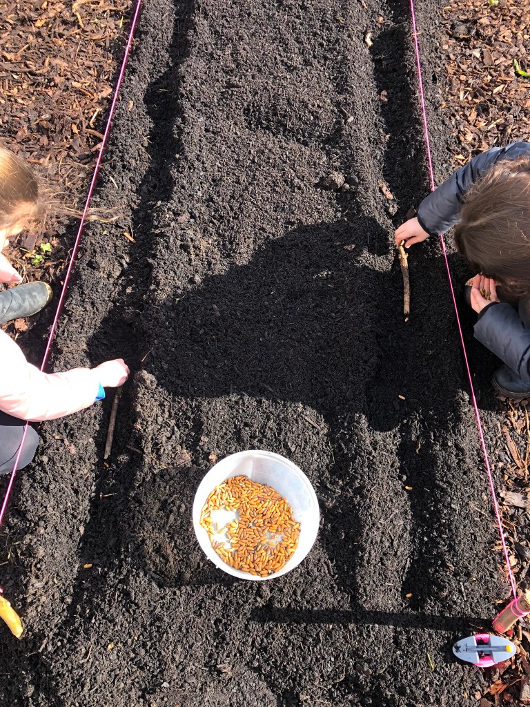 Wéi all Joer hunn d’Kanner vum Atelier Zeralda de Wee an de Gaart zréckfonnt fir een onvergiesslechen Nomëtten. Trotz de nach zimlech frëschen Temperaturen hu mir « Buschbohnen » geplanzt, robust Käre déi och bei kalem Wierder opginn, mat enger Festegkeet bis zu -3°C. Fir un déi Kären ze kommen, hunn déi kléng Gäertner fir d’éischt missen d’Kären aus der ausgedrechenter Planz vu leschtem Joer eraushuelen, wat rëm beweist dass een sech net op d’Ausgesinn eleng verloosse soll. Zum Schluss huet d’Viola, Educatrice beim Atelier, Schmiere gemaach, mat Botter déi d’Kanner matbruecht hate mat frësche Kräideren an Blummen aus dem Gaart; eng lecker Manéier fir dëse flotten Mëtteg an der frëscher Loft ofzeschléissen.