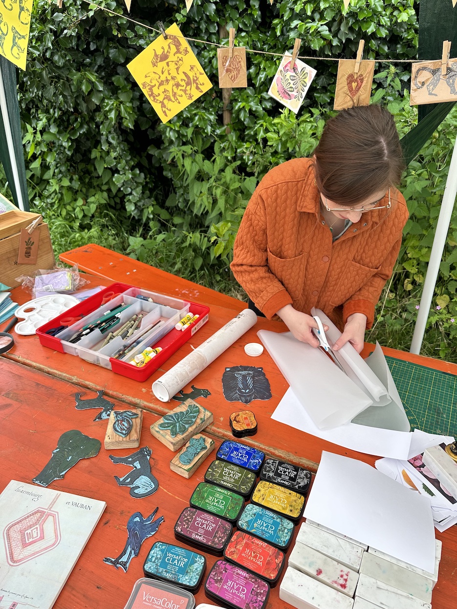L’atelier d’Ex Libris végétal avec Léa, véritable fée des arts graphiques, a guidé les participants dans la création de tampons végétaux uniques. Et pour couronner le tout, les participants ont pu siroter des cocktails maison préparés juste à côté, alliant créativité visuelle et gustative, proposée par l’équipe du Bar à cocktail du quartier (BAC). ![]()