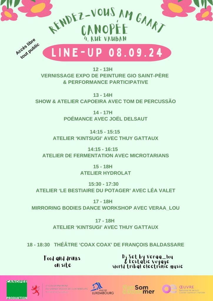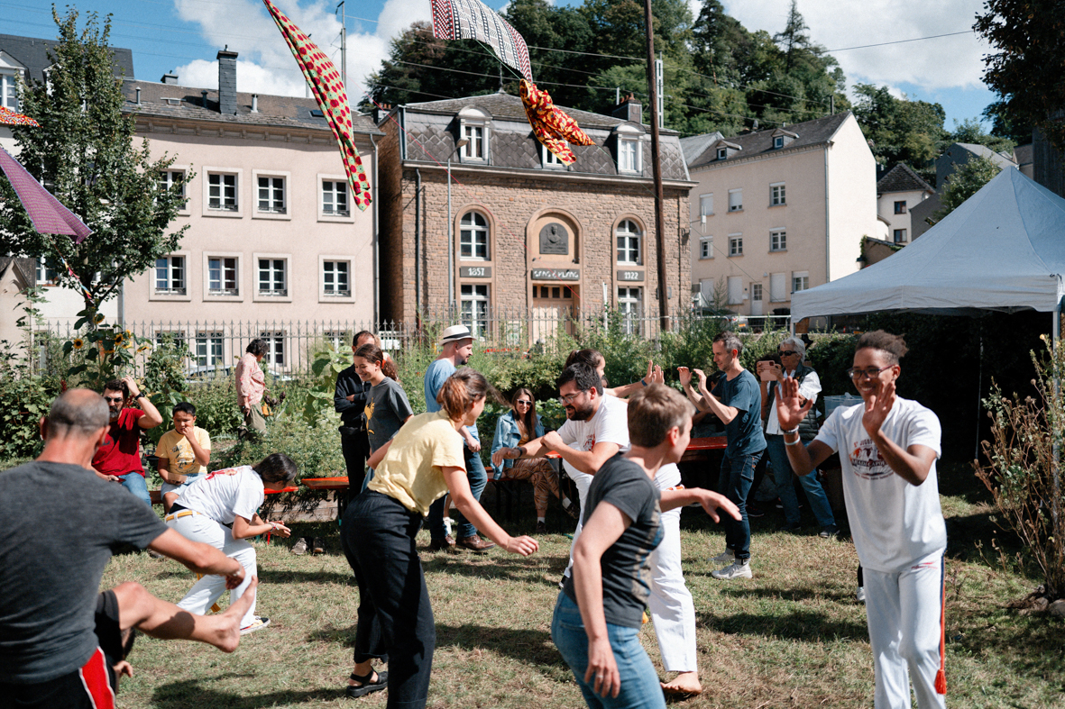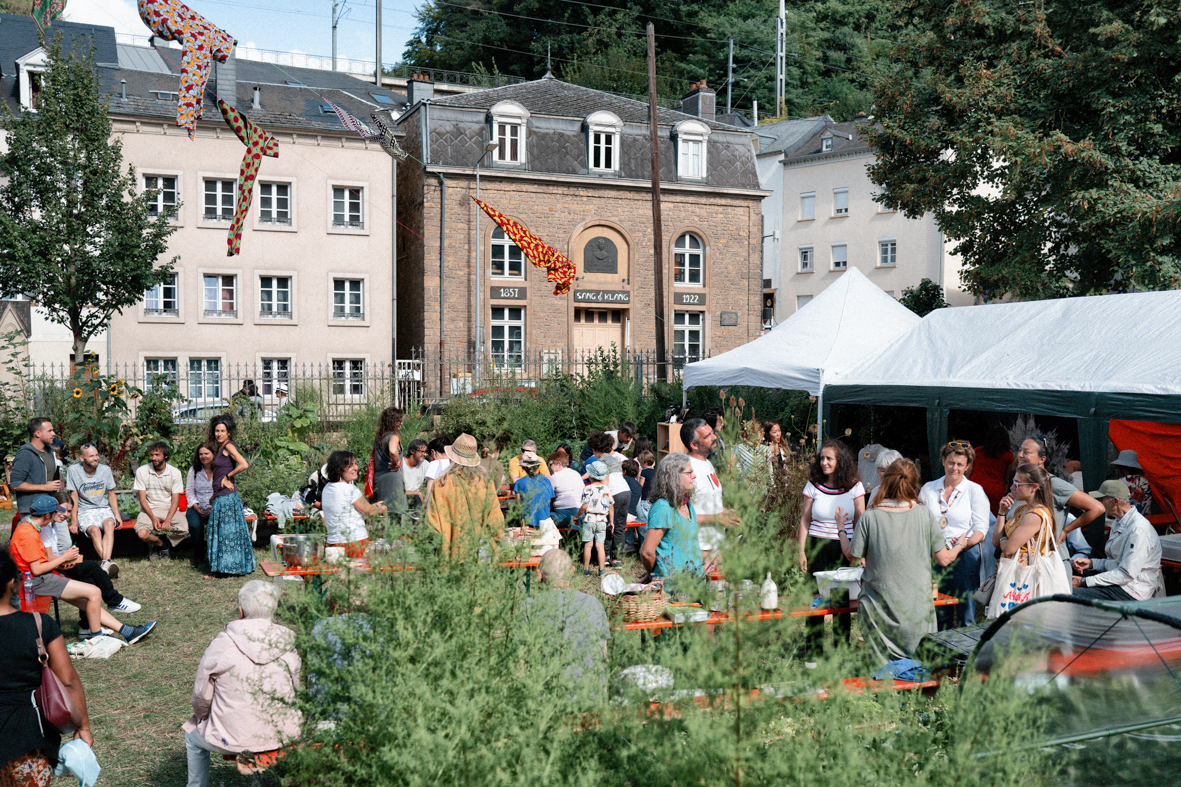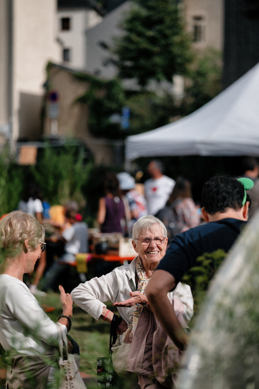 Un ÉNORMISSIME MERCI à tous ceux qui ont contribué au succès de cet événement. Une équipe de 35 personnes a façonné cette journée, en comptant l’équipe de Canopée, les intervenants et les artistes, les techniciens, des grandes et petites mains qui ont aidé à monter et démonter le décor, la technique, toute l’infrastructure. A ne pas oublier les nombreux bras aux fourneaux qui ont concocté pendant plusieurs jours les différents plats salés et sucrés pour les équipes et le public, avec en très grande partie des légumes et fruits du potager. Les souvenirs de notre événement prennent vie grâce au talent du photographe Émile Hengen, qui a immortalisé chaque moment avec brio et son œil sensible au moment présent. Finalement, merci à l’Oekosoph pour le prêt des verres, à l’Atelier Zeralda et aux amis des Pompiers du Pfaffenthal pour les tentes.