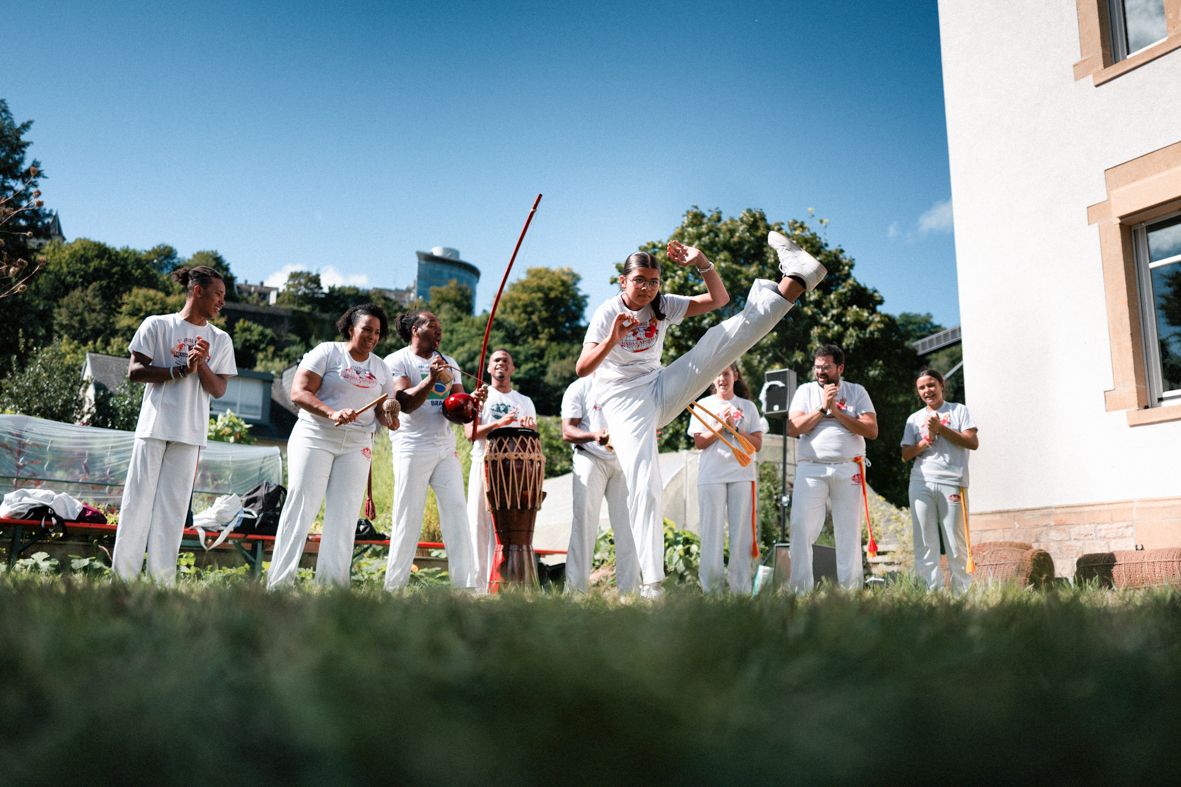L’atelier de Capoeira, dirigé par Tom de Percussão, a apporté une dimension rythmée à notre rendez-vous. La capoeira, mêlant art martial et danse, a captivé les participants par ses mouvements gracieux et sa philosophie de non-violence et de solidarité. Les participants ont découvert non seulement les mouvements gracieux de cet art martial brésilien, mais aussi les chants traditionnels qui célèbrent l’humilité, la solidarité et le respect dans la pratique.