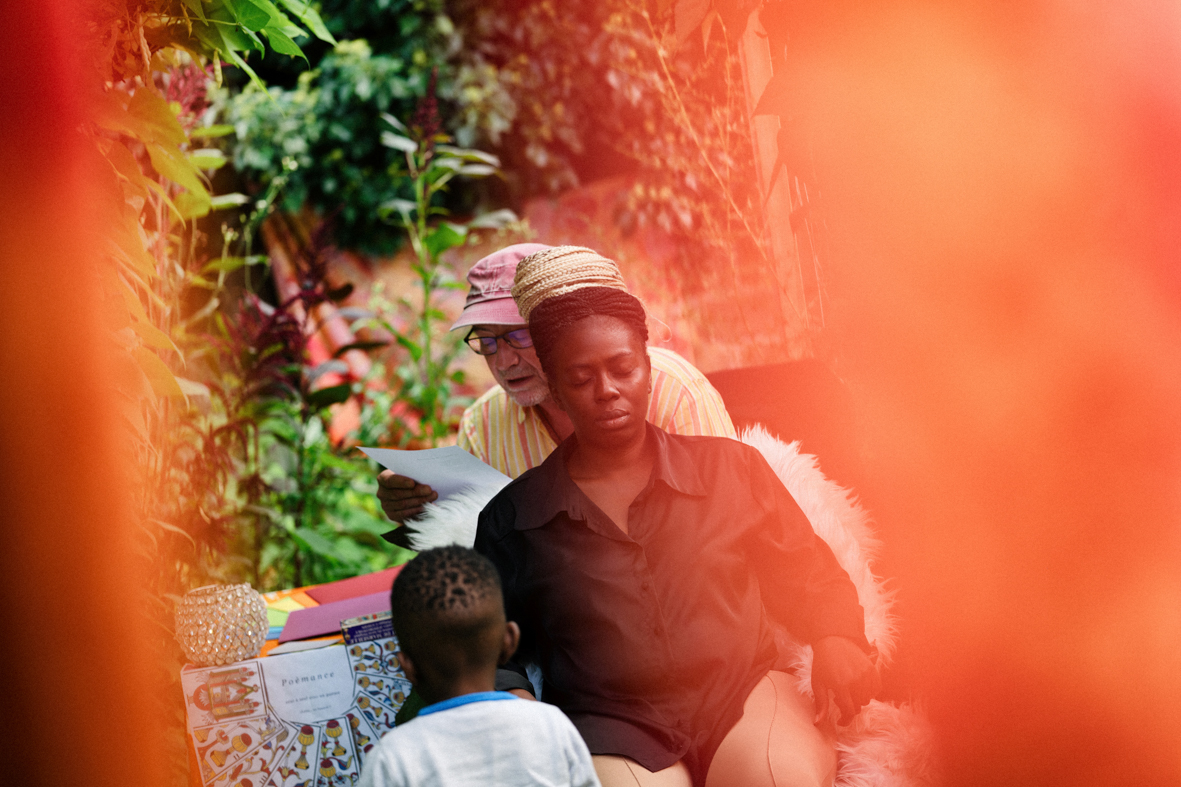 Tout au long de l’après-midi, un moment de poésie et de calme a été offert avec Joël Delsaut. En tête-à-tête avec le poète, chacun a pu choisir une couleur, tirer une carte et se laisser emporter par les mots dans une expérience introspective et personnelle. En toute discrétion, à l’intérieur du tunnel des haricots.