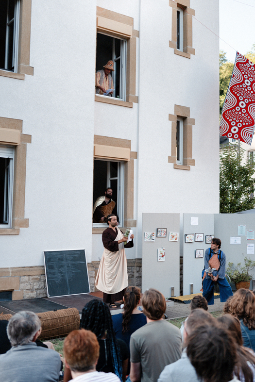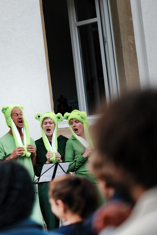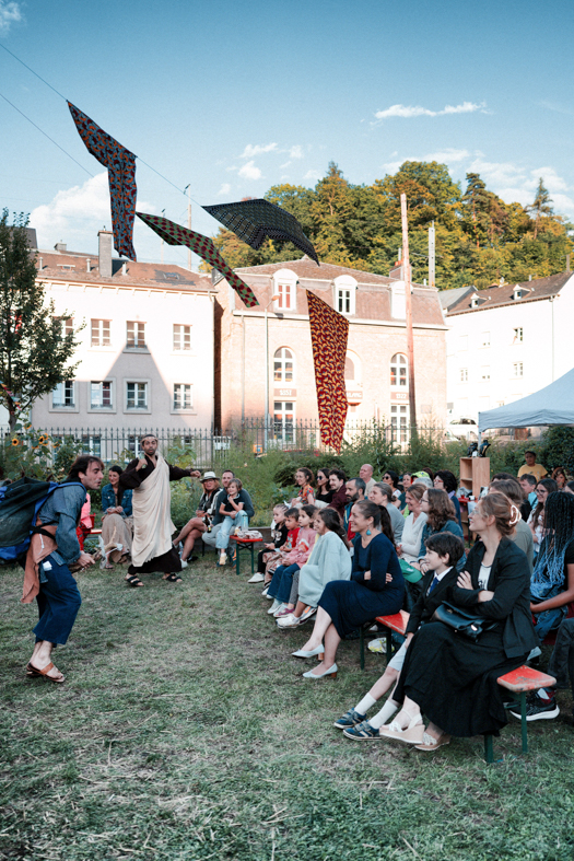 Pour clore la journée, la performance théâtrale COAX COAX, dirigée par François Baldassare, a réuni plus de 70 spectateurs. Inspirée par « Les Grenouilles » d’Aristophane, cette pièce a enchanté avec ses rebondissements et son esprit ludique, ramenant la poésie et le rire au cœur de l’événement. Les éclats de rire des enfants ont ajouté une note joyeuse à cette finale mémorable.