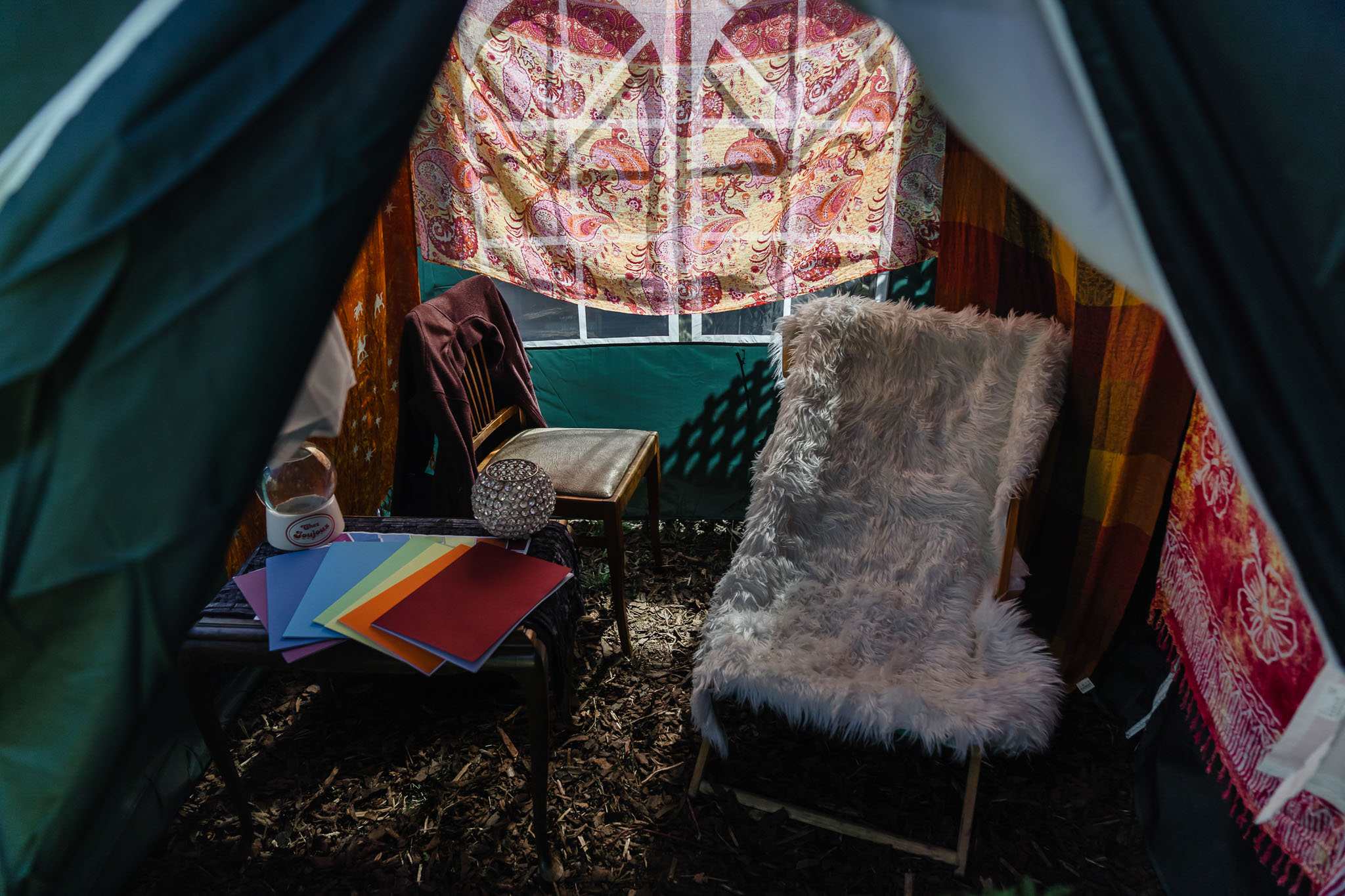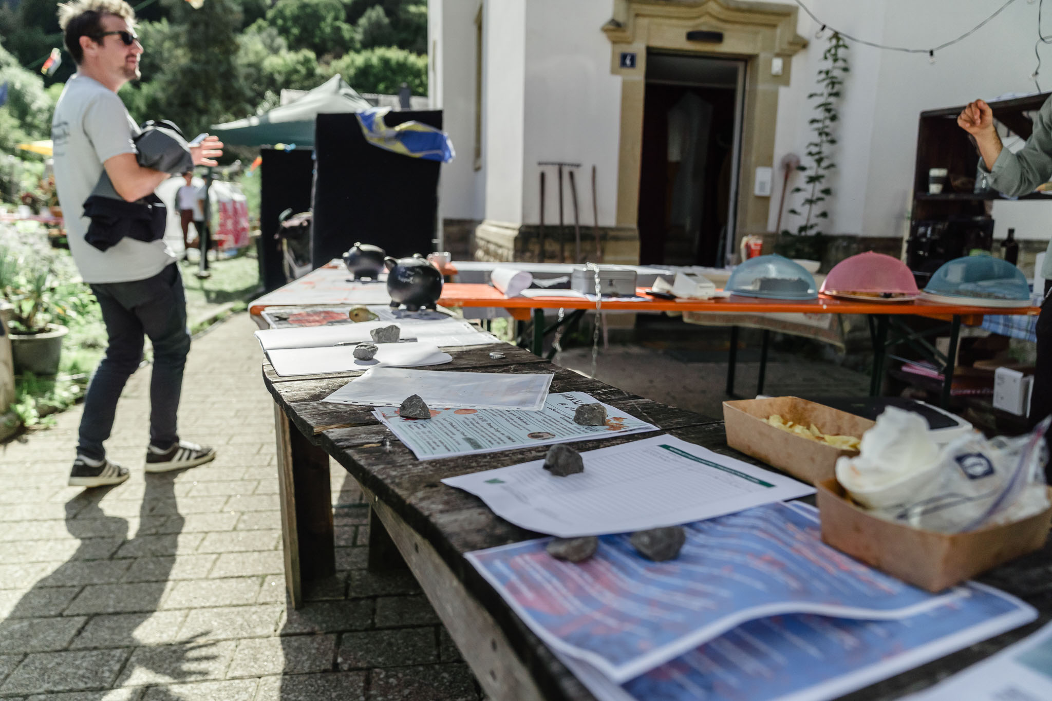 Mélissa (Geschichtenerzielerin) a introduit les visiteurs aux hydrolats et leur utilisation. Les participants ont pu expérimenter la distillation et observer les essences végétales se former. Plus qu’un atelier, un petit laboratoire de senteurs, de science douce, de lien avec les plantes.