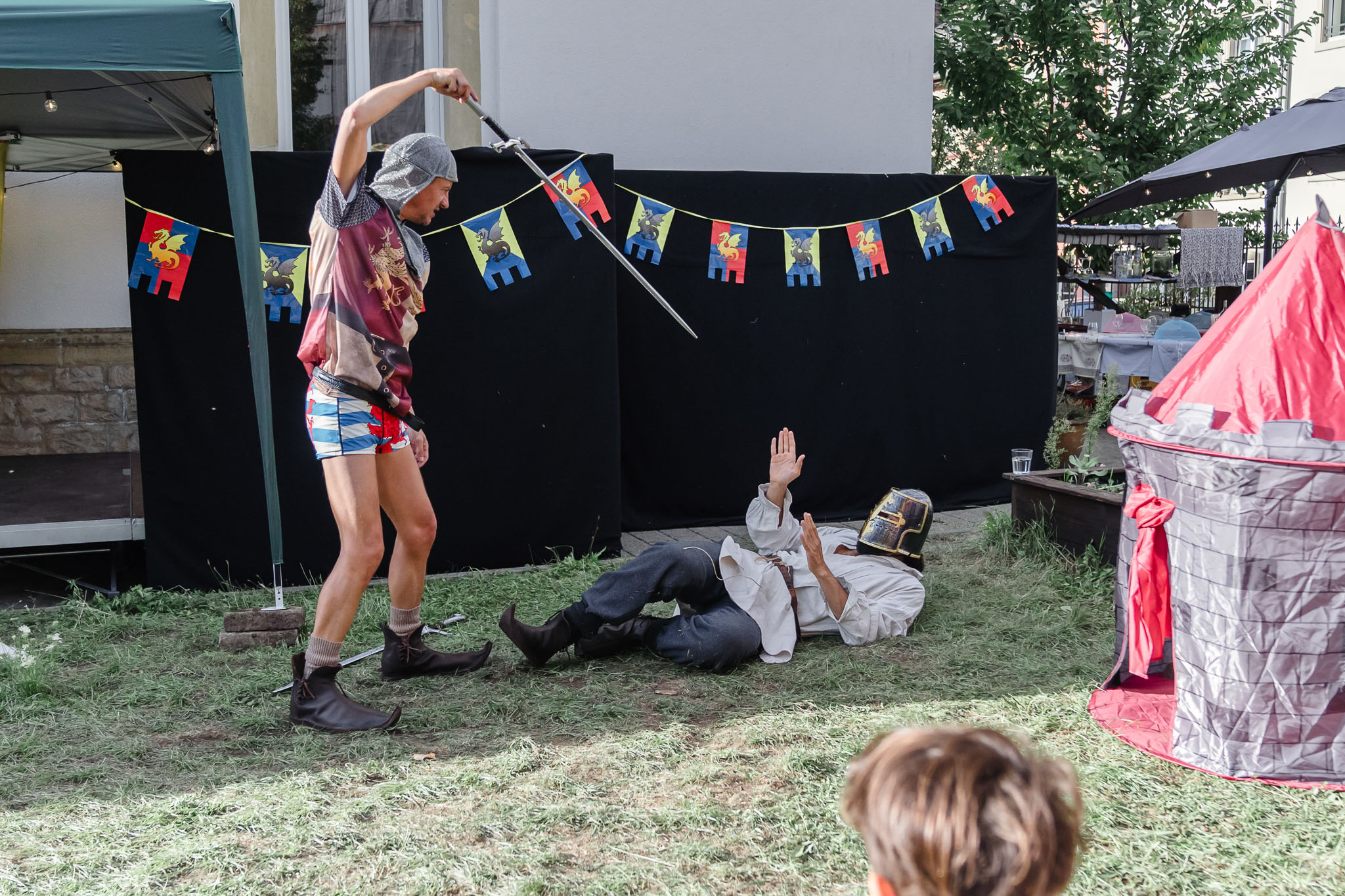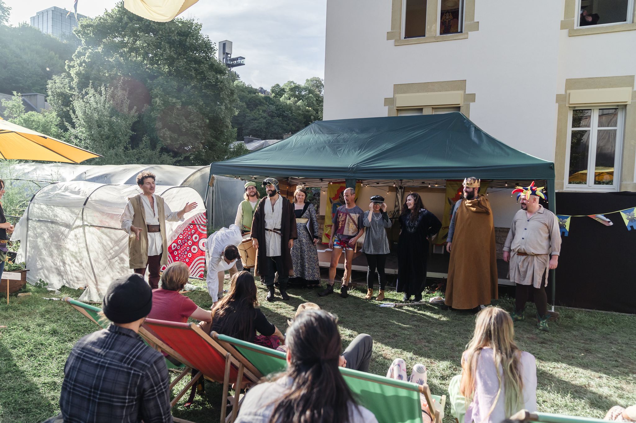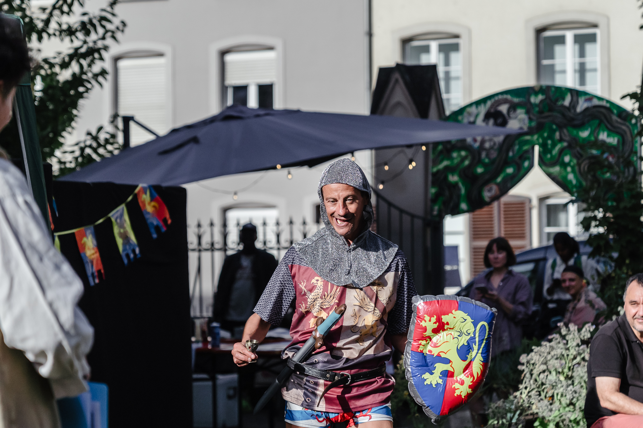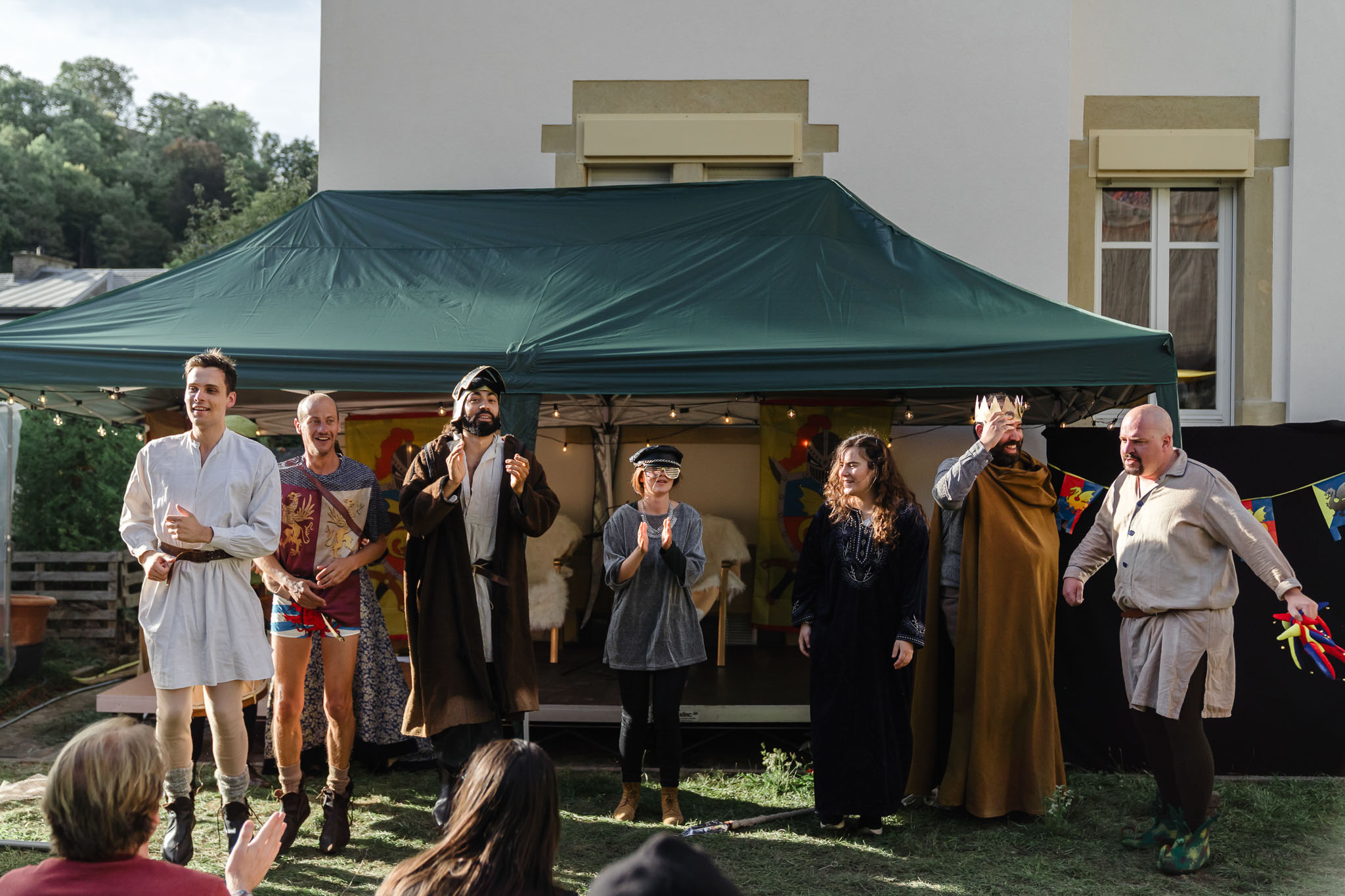 Lors du rendez-vous au jardin du 6 septembre, notre espace s’est transformé en scène à ciel ouvert pour une perfomance théâtrale pleine d’énergie. Sous la direction de François Baldassare, la troupe a présenté une pièce originale mêlant improvisation, personnages surprenants et une touche de folie médiévale. Selon la tradition, la joyeuse troupe a pu profiter de 2 répétitions, et puis hop…sur scène !