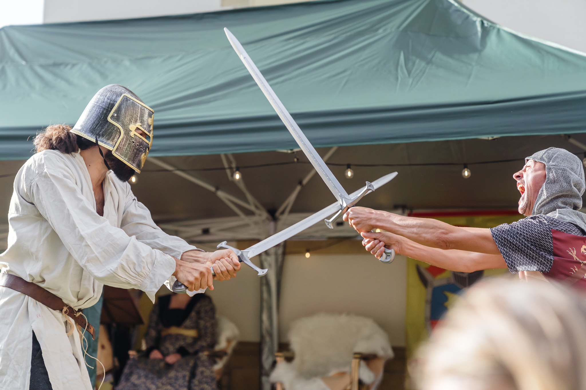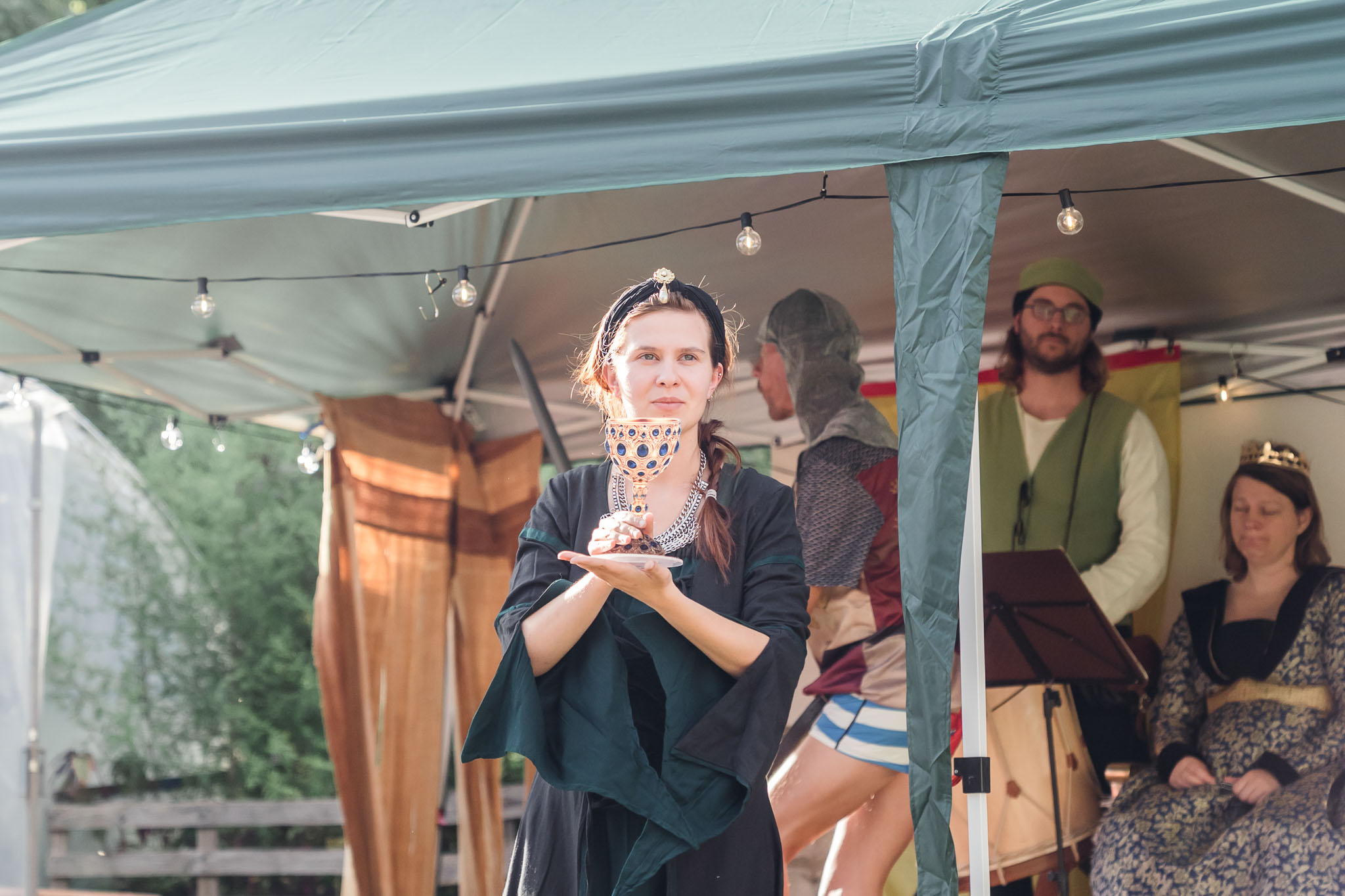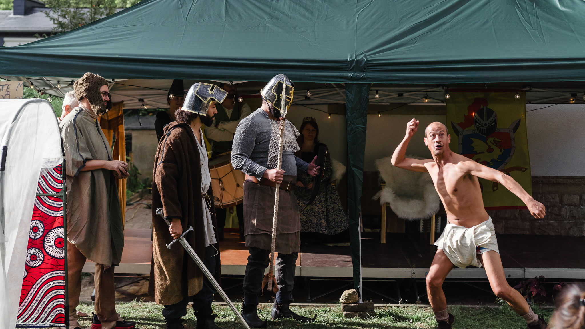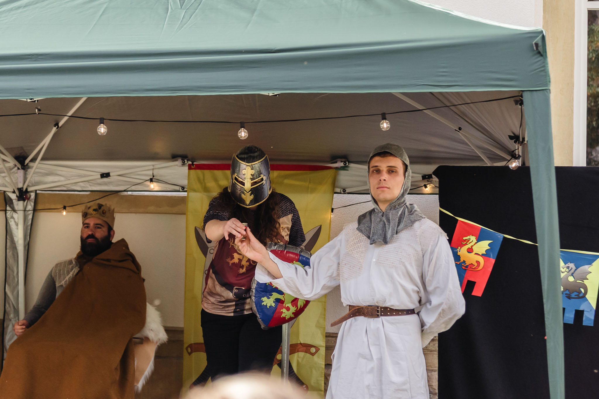 L’histoire de Perceval, cet enfant des bois parti devenir chevalier de la Table ronde, a été racontée par Joël Delsaut et a été racontée par Joël Delsaut et interprétée entre autre par les acteurs du Cercle d’Acteurs, Arthur Ladame, Baptiste Boilley, Marine Convers, Schaya Abraham, Yohann Wattiez, accompagnés de l’ensemble vocal Léodio animé par Pauline Cano, Rémi Goossens et Barbara. Les costumes, signés Carmen di Pinto et réalisés avec l’aide d’Émilie, ont apporté une belle touche visuelle à cette aventure chevaleresque revisitée.