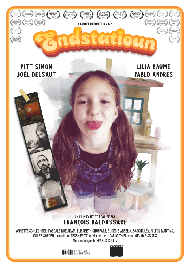 Tourné entre Luxembourg et Thionville, ce court-métrage réunit une belle équipe d’acteurs, entre autres Pitt Simon, Joël Delsaut, Sascha Ley, Annette Schlechter, Pablo Andres et la jeune Lilia Baume. Sous ses airs légers, Endstatioun parle de la solitude, de ce en quoi on choisit de croire, et de la fine ligne qui sépare parfois le rêve de la réalité.