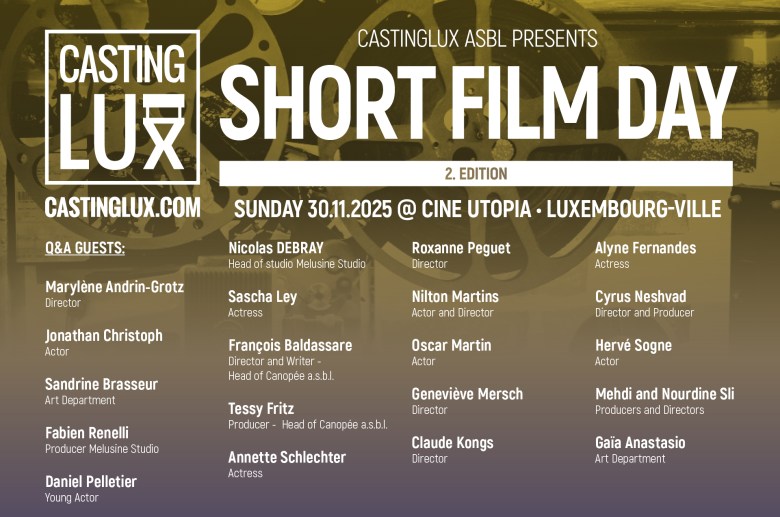 Retrouvez Canopée le dimanche 30/11/2025 de 16h à 17h au Ciné Utopia lors du Short Film Day 2 organisé par CastingLux asbl. Nous auront le plaisir de diffuser notre film Endstatioun, écrit et réalisé par François Baldassare.