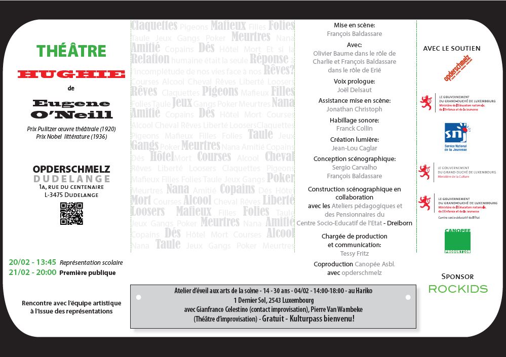 - Atelier d’éveil à l’art dramatique et d’introduction à la pièce +14 ans: 04/02 de 14-18h, au Hariko, gratuit, KULTURPASS bienvenu