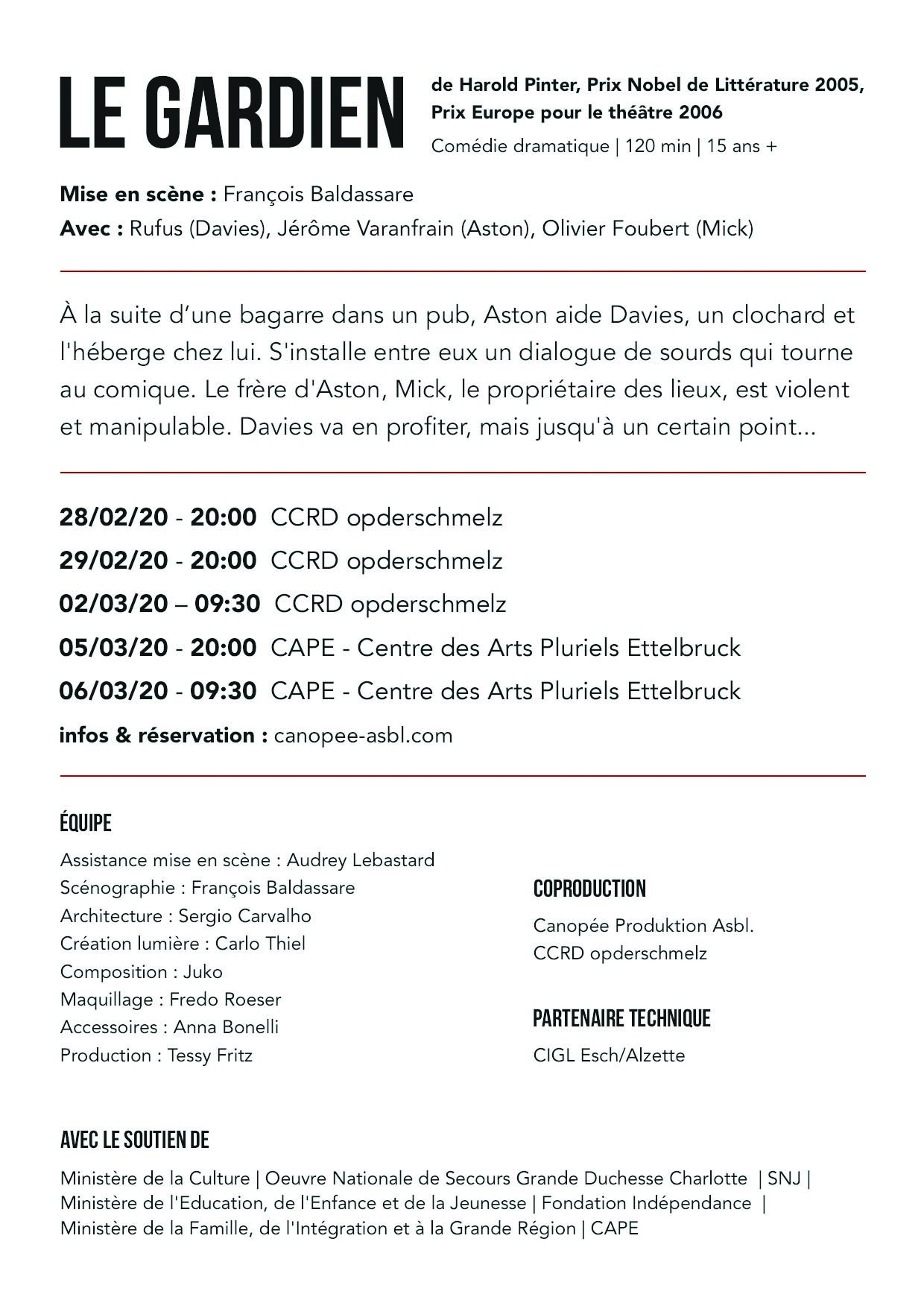 28 février 2020 à 20:00 Première, Théâtre Opderschmelz, Dudelange